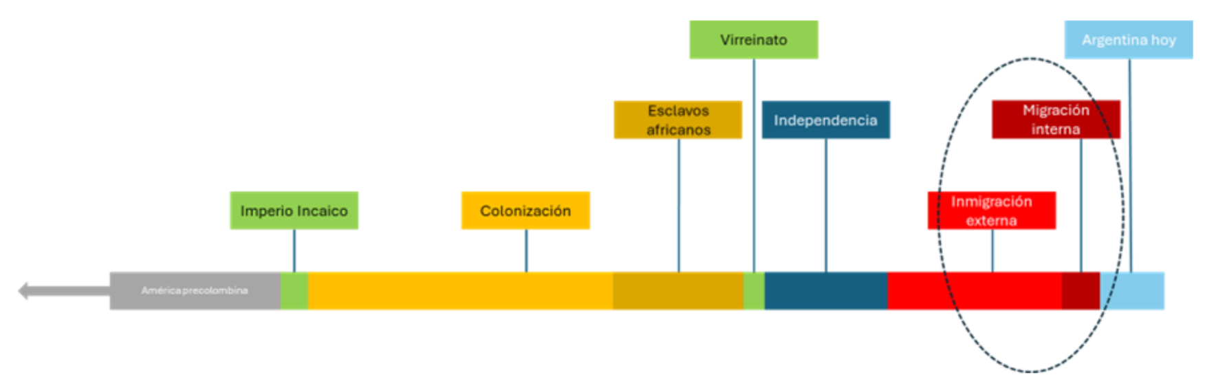 Como puede observarse en el gráfico adjunto, el período señalado con un óvalo punteado —coincidente con las grandes migraciones externas e internas— representa el momento histórico iluminado por el Tango.